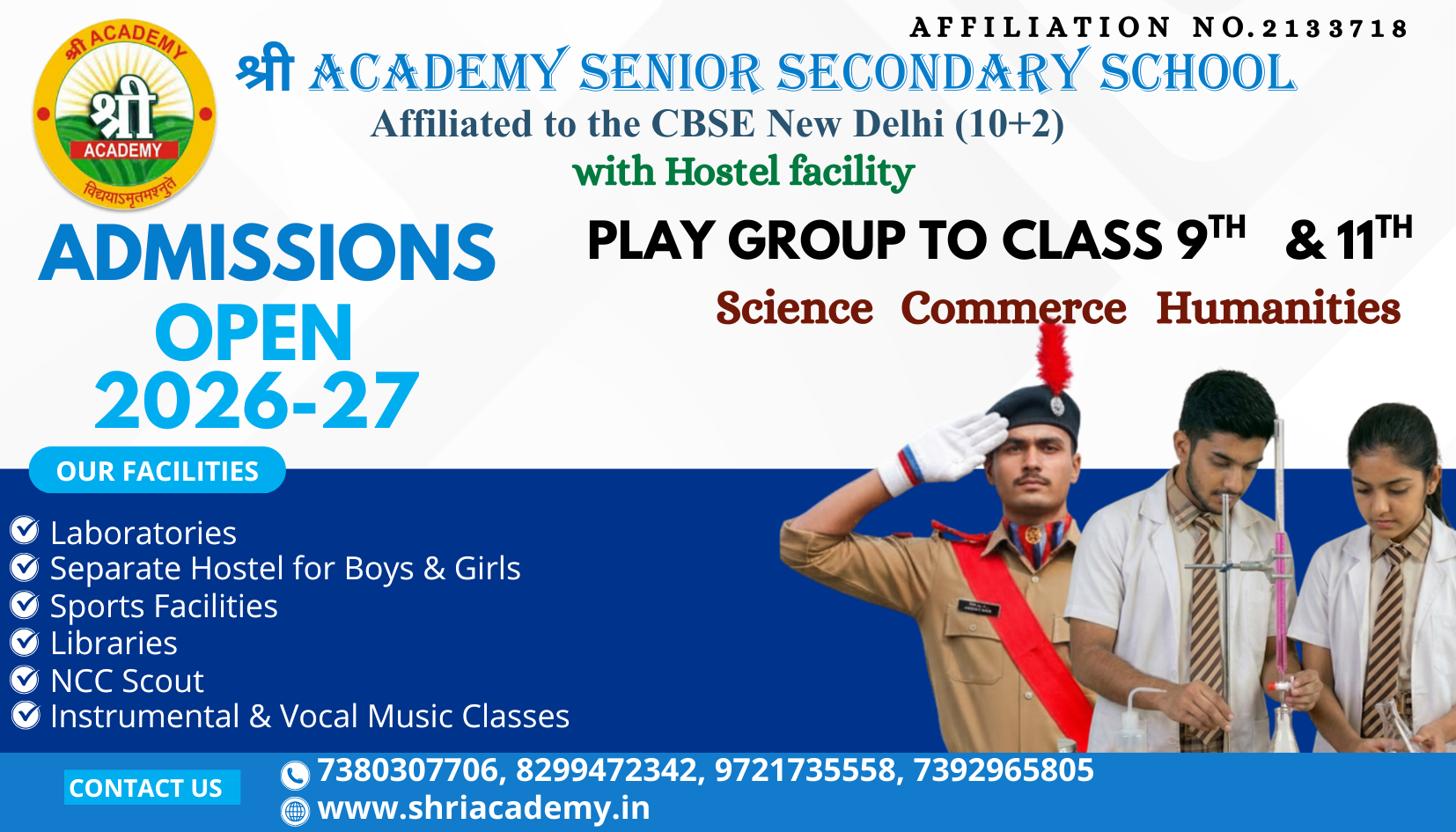 Shri Academy is located at Pasahi Kalan Sonbhadra and it is affiliated upto class 12th by CBSE Board . It was established in 2012-13 by two brothers ( Dr.Anil Kumar Pandey & Ajey Kumar Pandey) with a vision to facilitate quality education in the region.